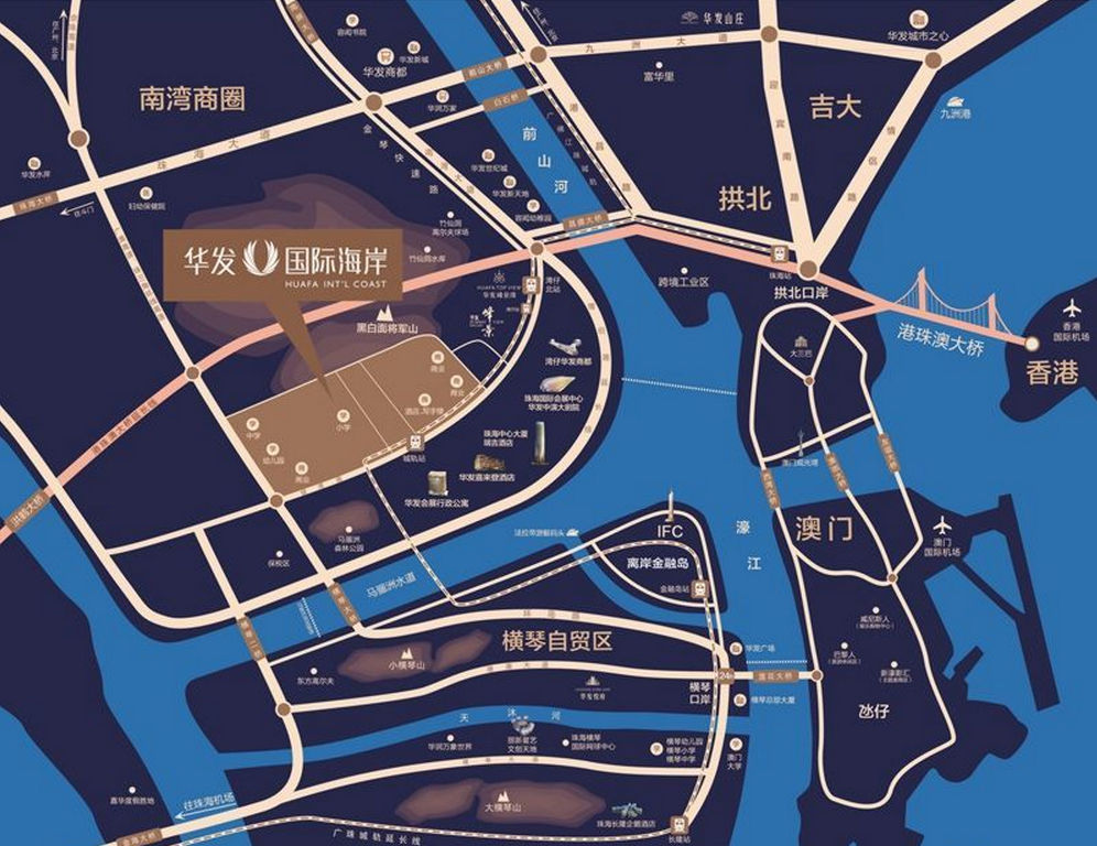 項目擁有會展組團的千億級配套,集會展、會議、展覽、劇院、音樂、酒店、辦公、商業、旅遊、觀光配套,區域內廣珠輕軌延長線、珠澳海底隧道及金海大橋等重大基礎設置正在規劃,這裡將顛覆珠海人居生活體驗,開啟珠海全新的生活方式